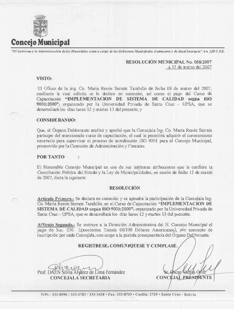Resolución Municipal Nº 58-2007