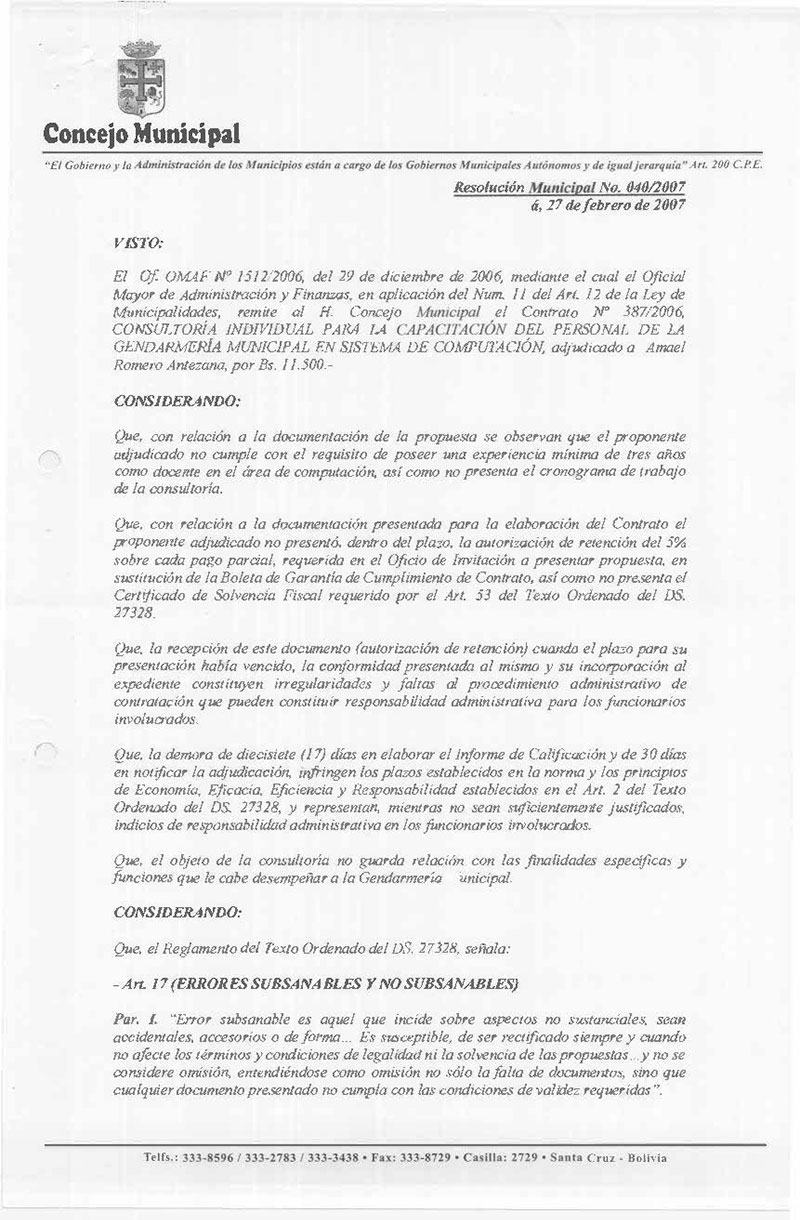 Resolución Municipal Nº 40-2007
