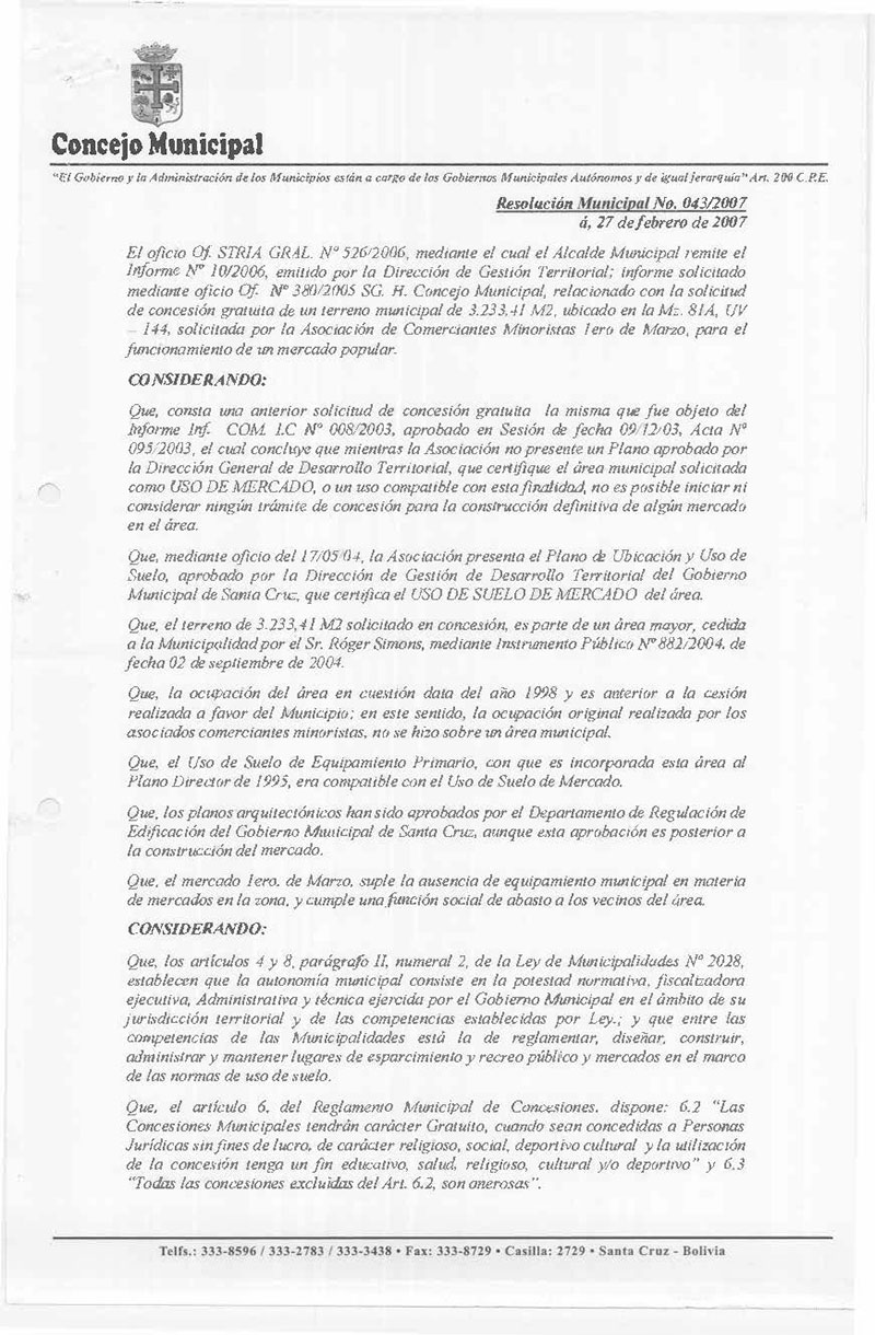Resolución Municipal Nº 43-2007