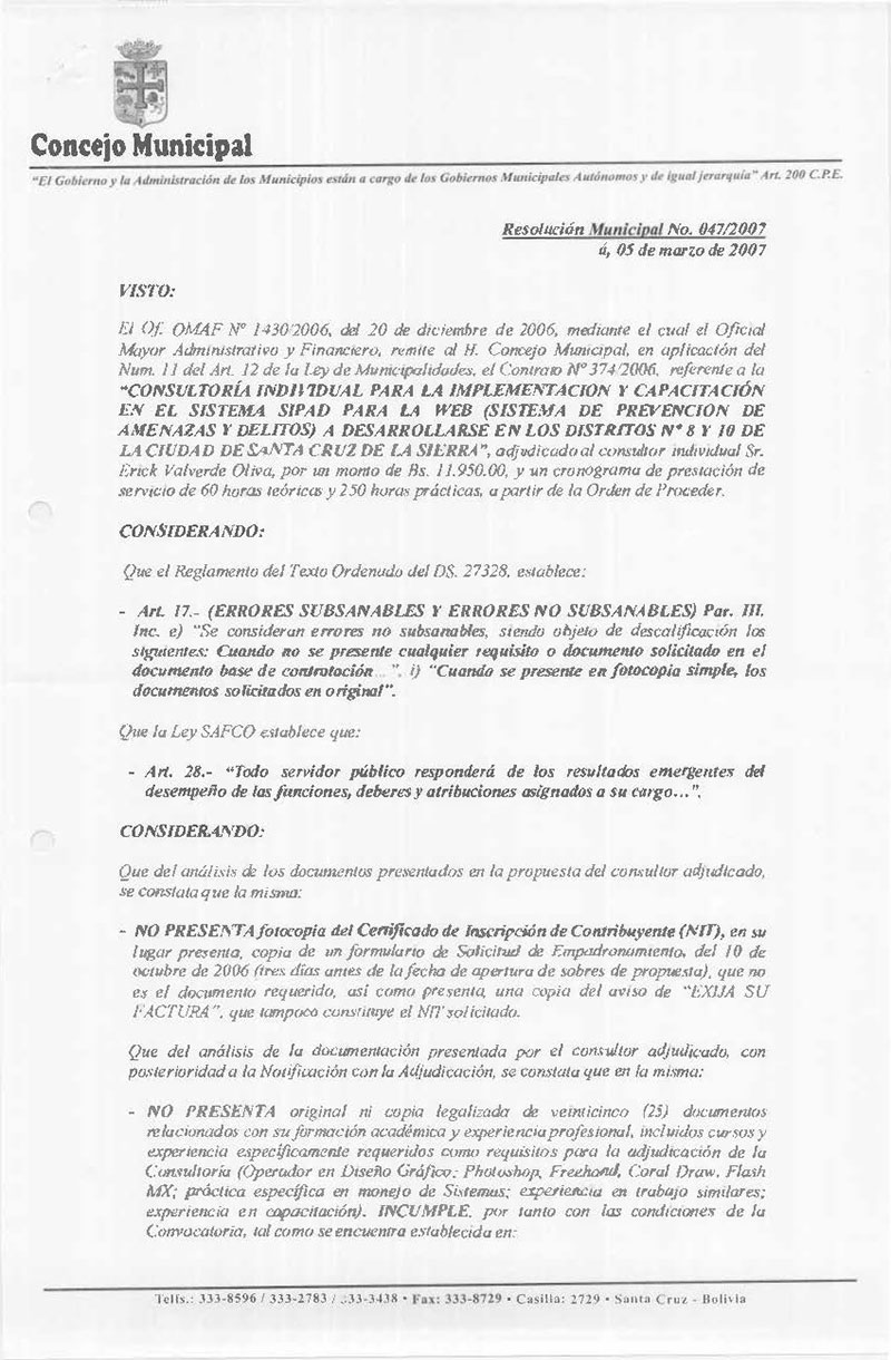 Resolución Municipal Nº 47-2007