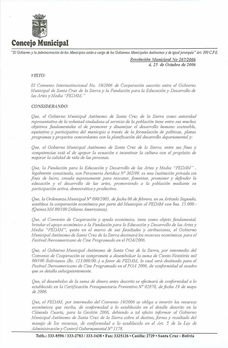 Aprueba el Contrato No. 019/2006, de cooperación para la Fundación para la Educación y Desarrollo de las Artes y Media - FEDAM.