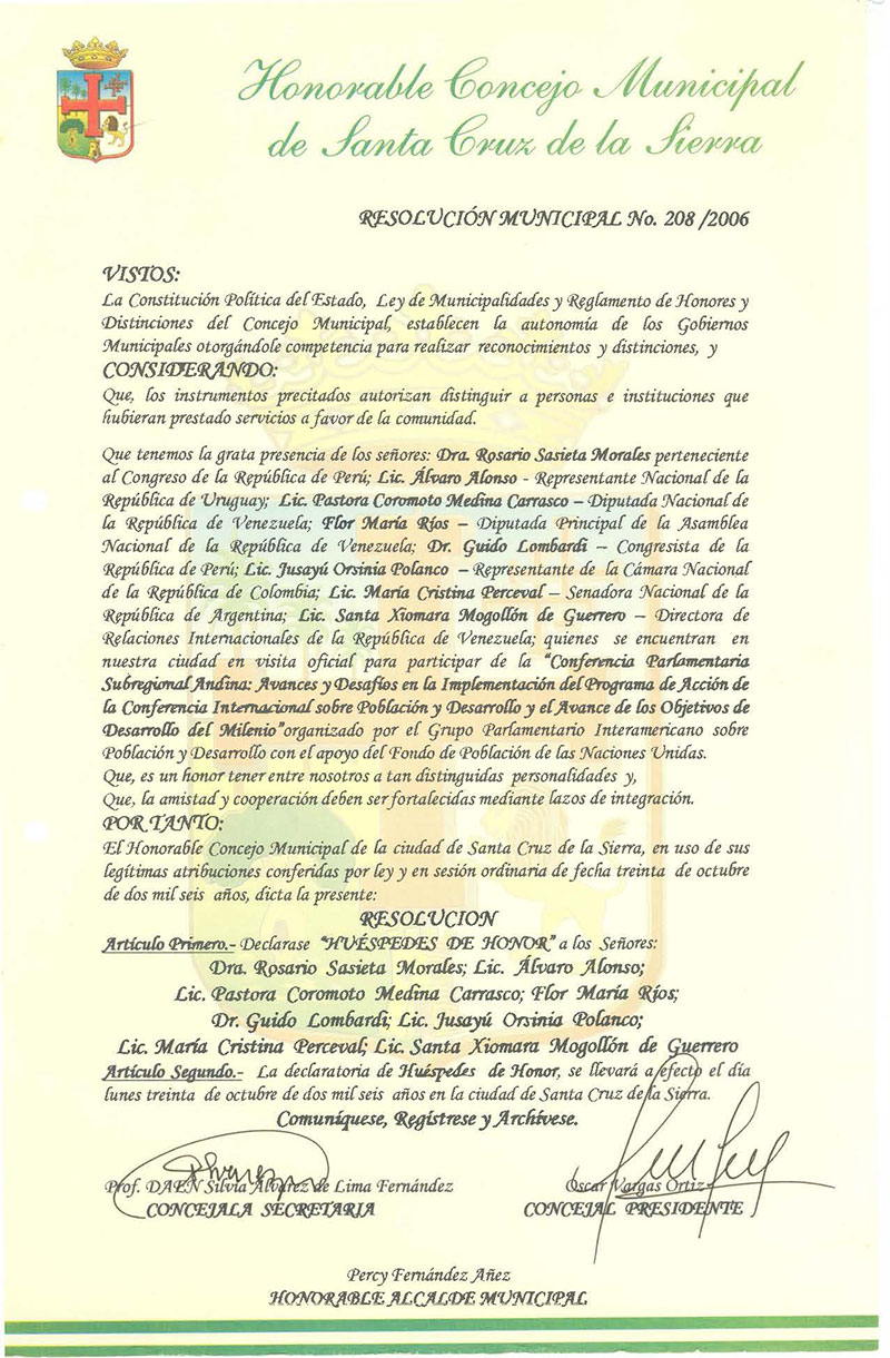 Declarase Huésped de Honor a los Señores que participan de la Conferencia Parlamentaria Subregional Andina.