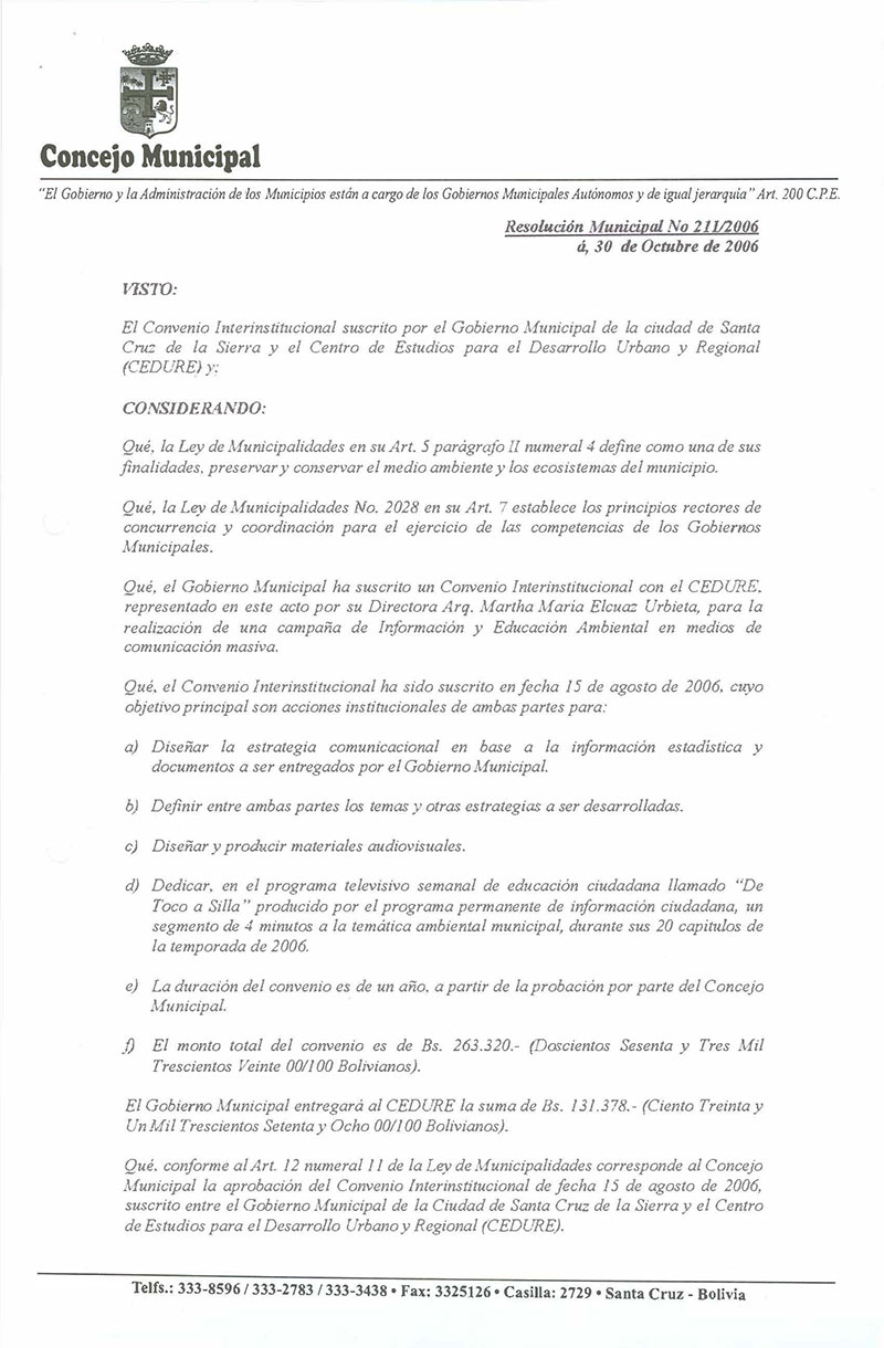 Aprueba el Convenio Interinstitucional No. 023/2006, suscrito con el Centro de Estudios para el Desarrollo Urbano Regional - CEDURE, para la realización de una campaña de Información y Educación Ambiental.