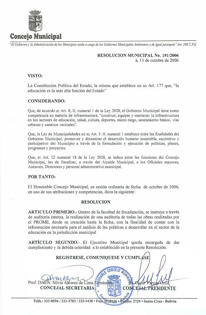 Resolución Municipal Nº 191-2006