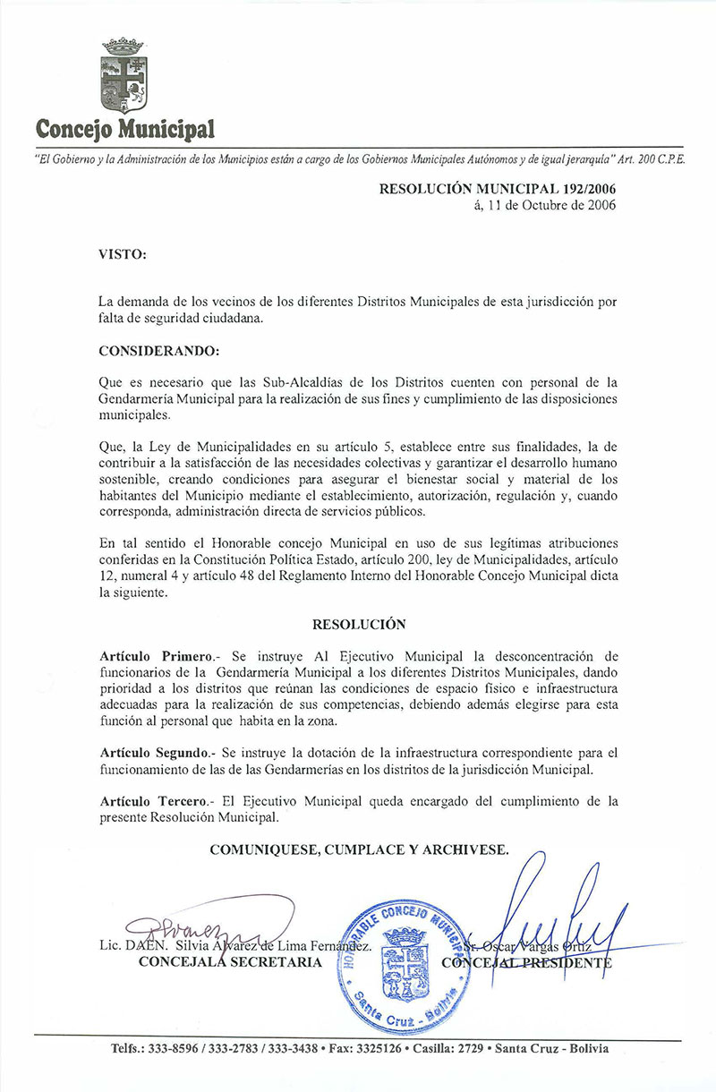 Resolución Municipal Nº 192-2006