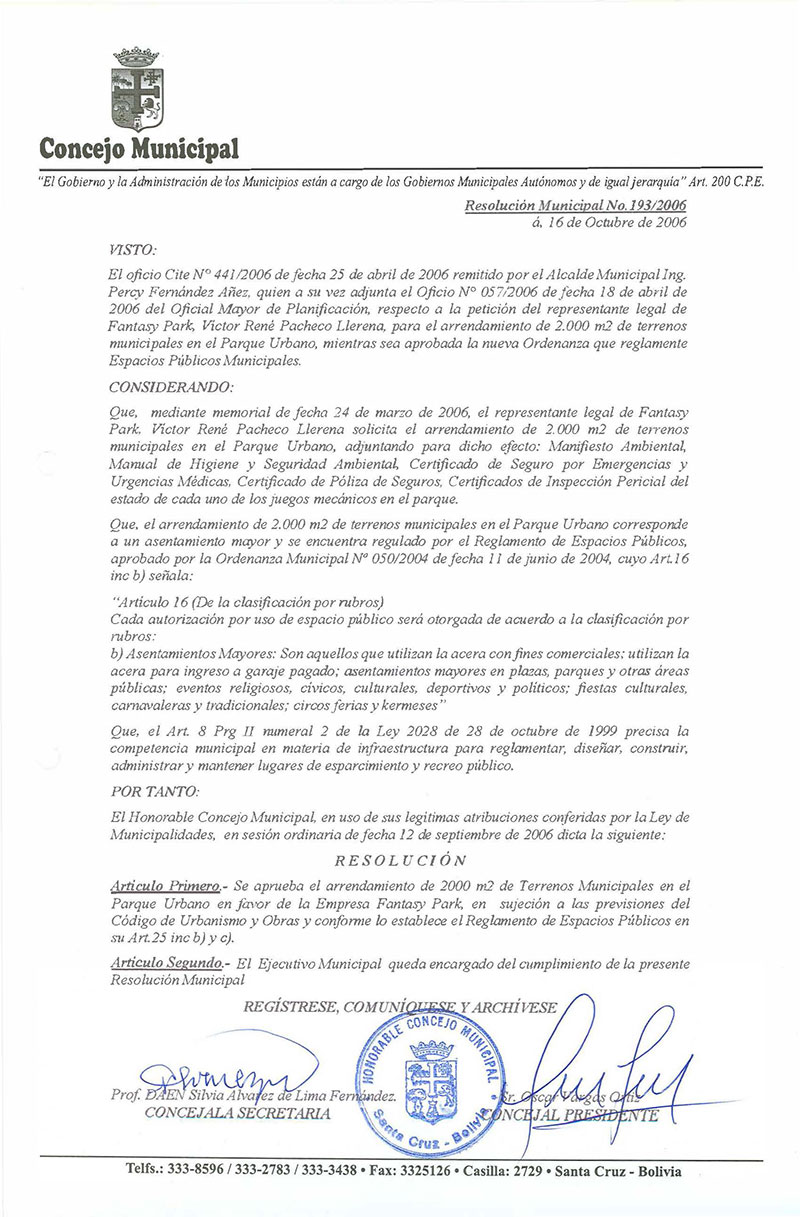 Resolución Municipal Nº 193-2006