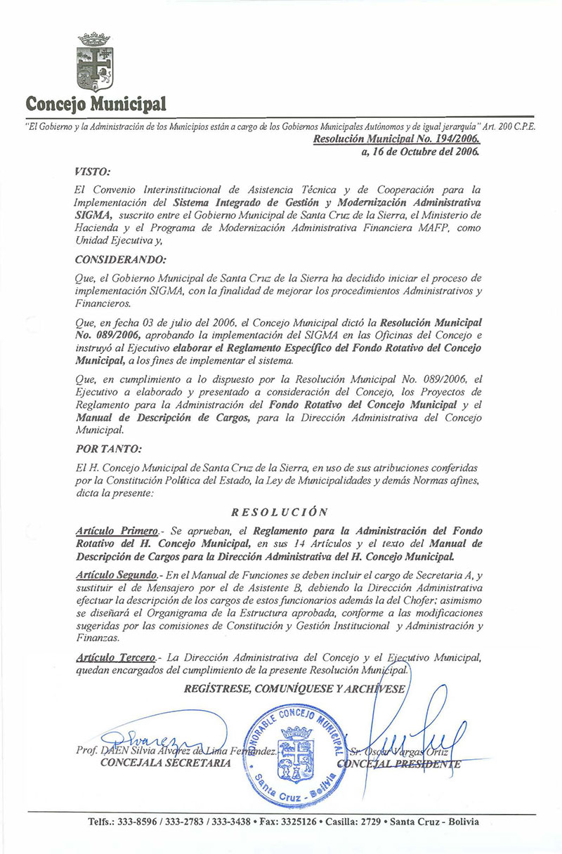 Resolución Municipal Nº 194-2006