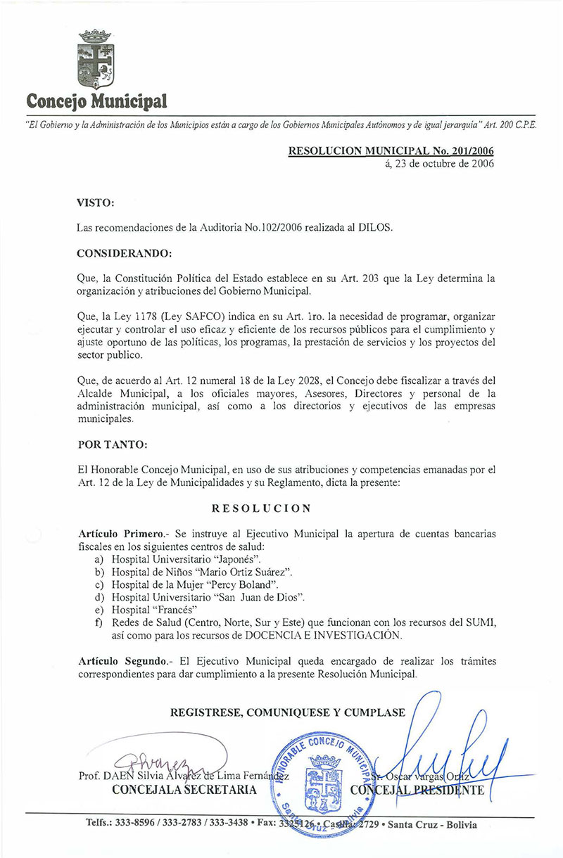 Resolución Municipal Nº 201-2006