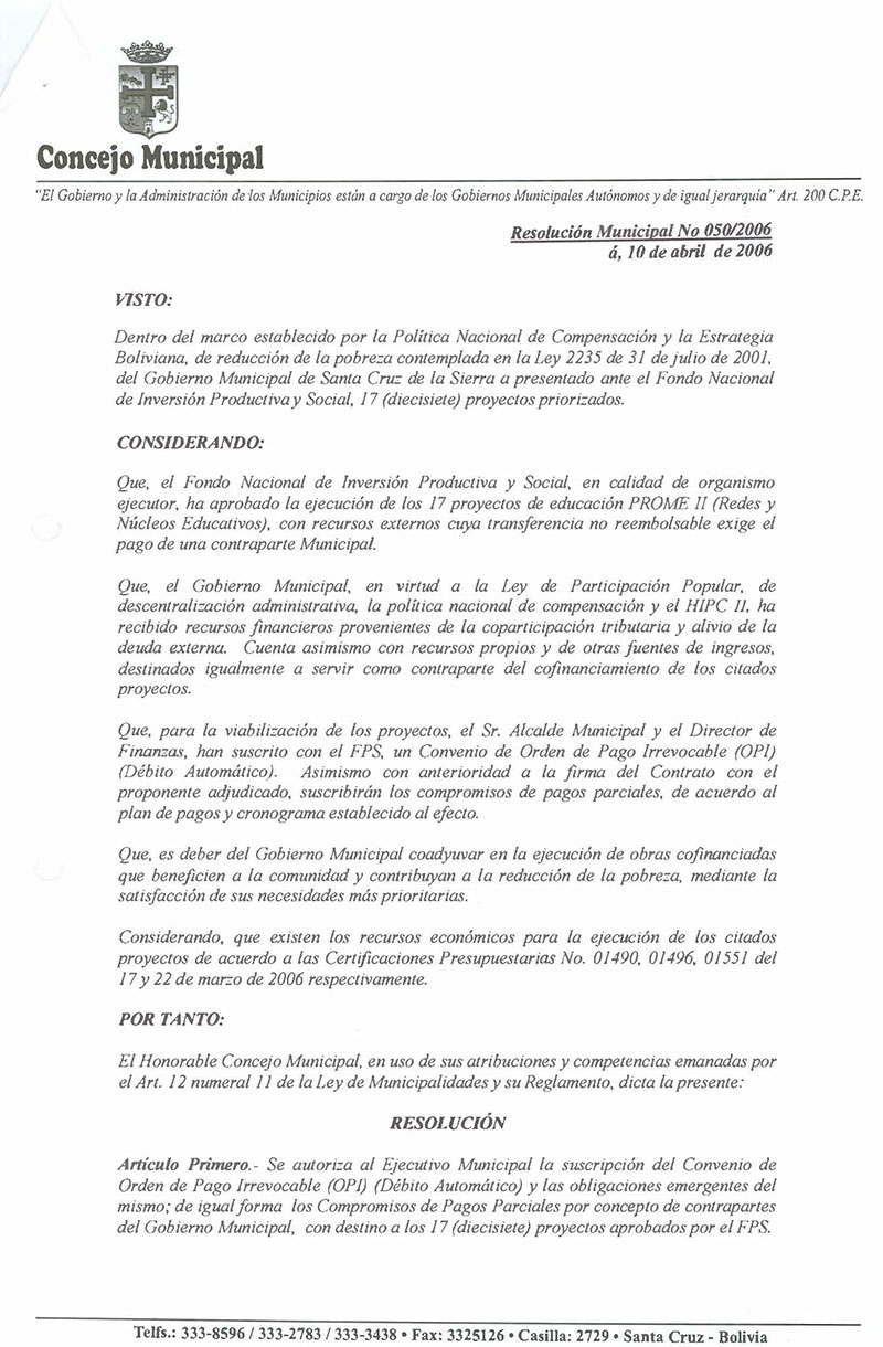 Resolución Municipal Nº 50-2006