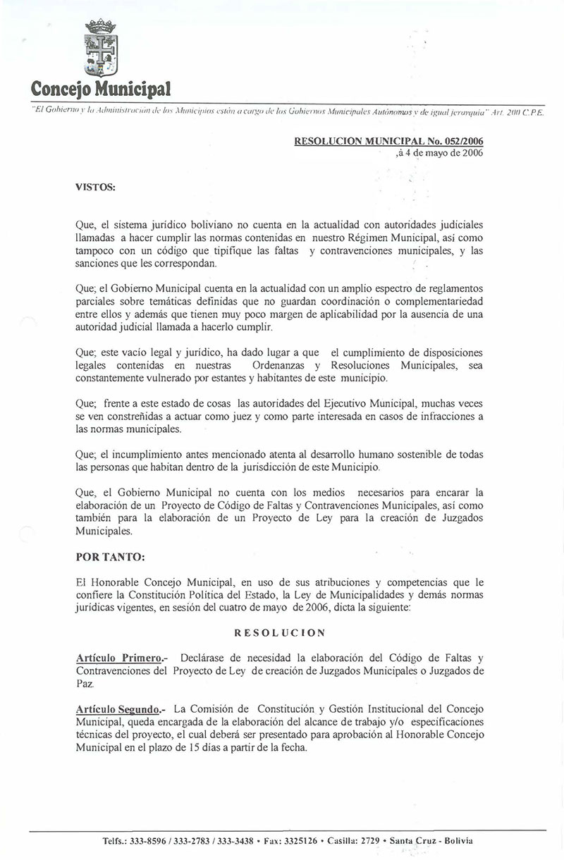 Resolución Municipal Nº 52-2006