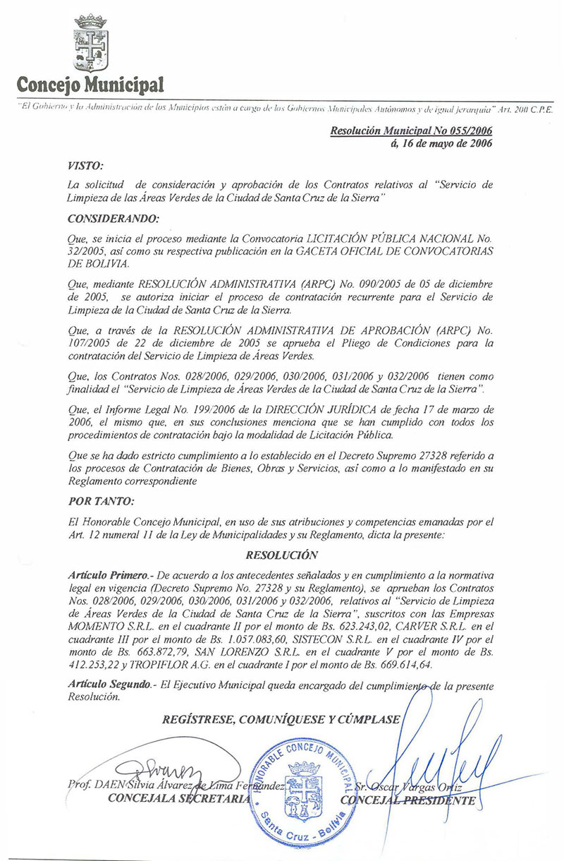 Resolución Municipal Nº 55-2006