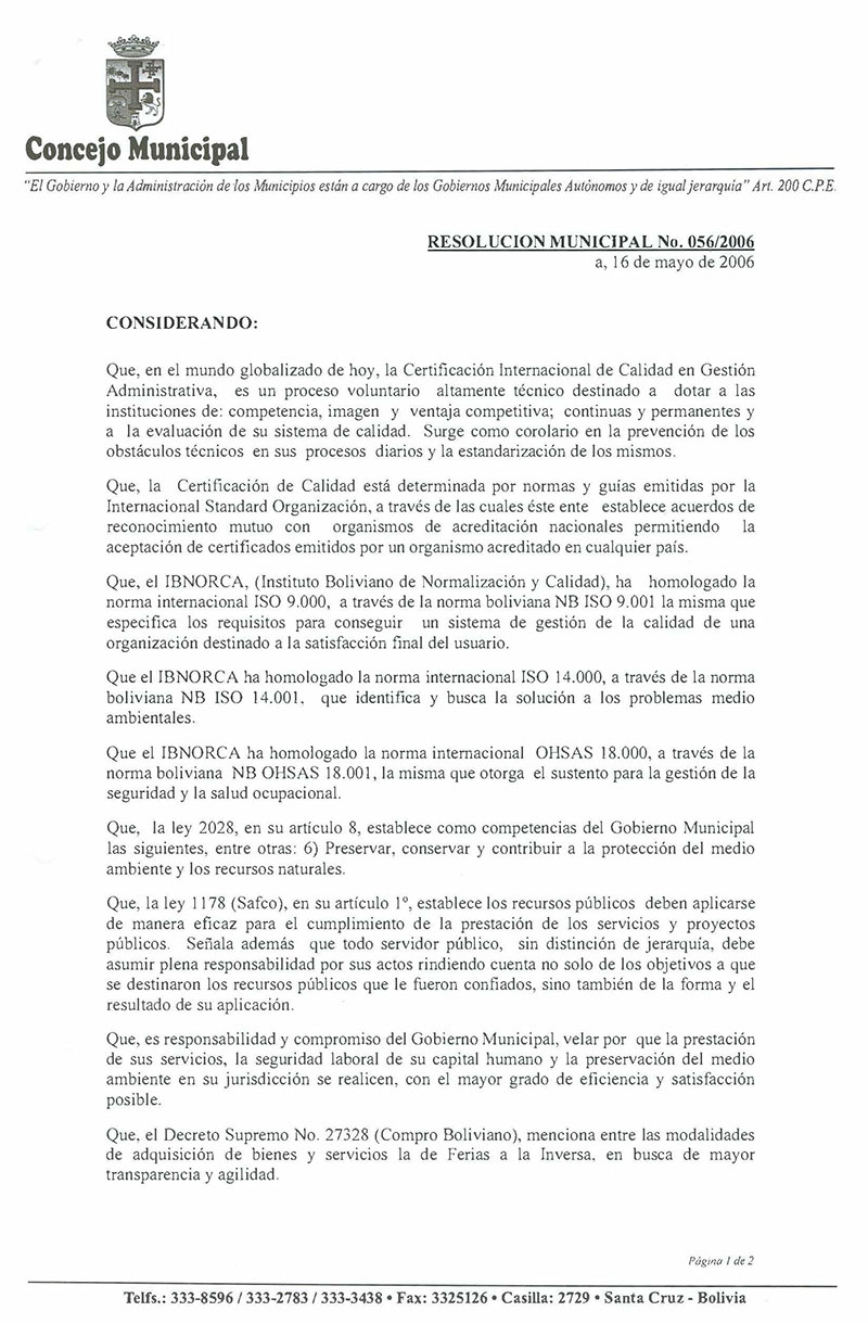 Resolución Municipal Nº 56-2006