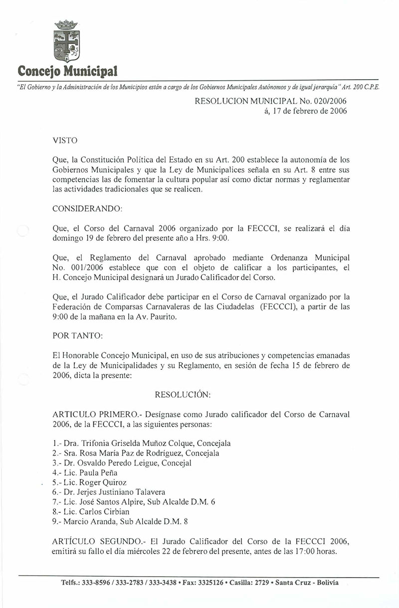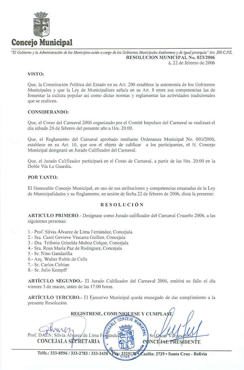 Designa el Jurado Calificador del Carnaval Cruceño 2006.