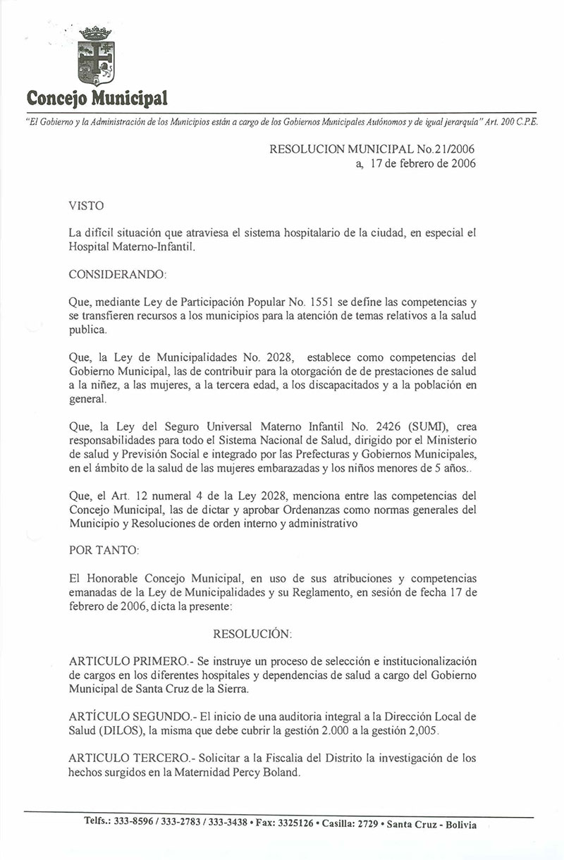 Instruye la realización de un proceso de selección e institucionalización de cargos en los diferentes hospitales y dependencias de salud del Gobierno Municipal.