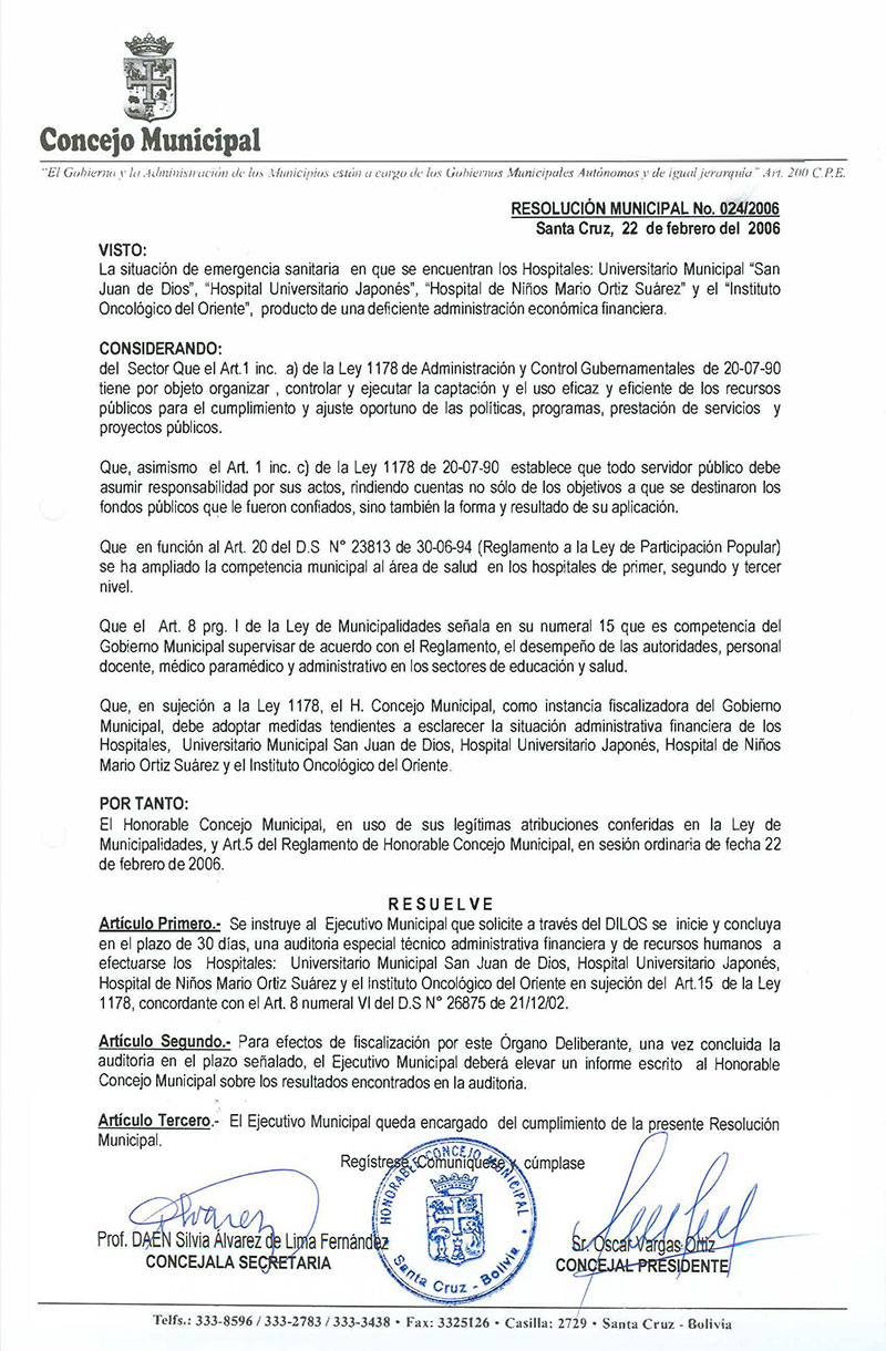 Instruye al Ejecutivo Municipal que solicite a través del DILO se inicie y se concluya en el plazo de 30 días una auditoria administrativa financiera a los Hospitales Universitario Japonés, San Juan de Dios y de Niños Mario Ortiz Suárez.