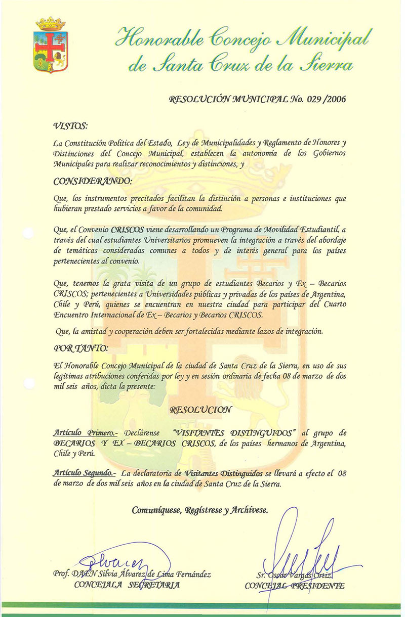 Declara Visitantes Distinguidos al grupo de Becarios y Ex becarios Criscos del hermano país de Argentina, Chile y Perú.