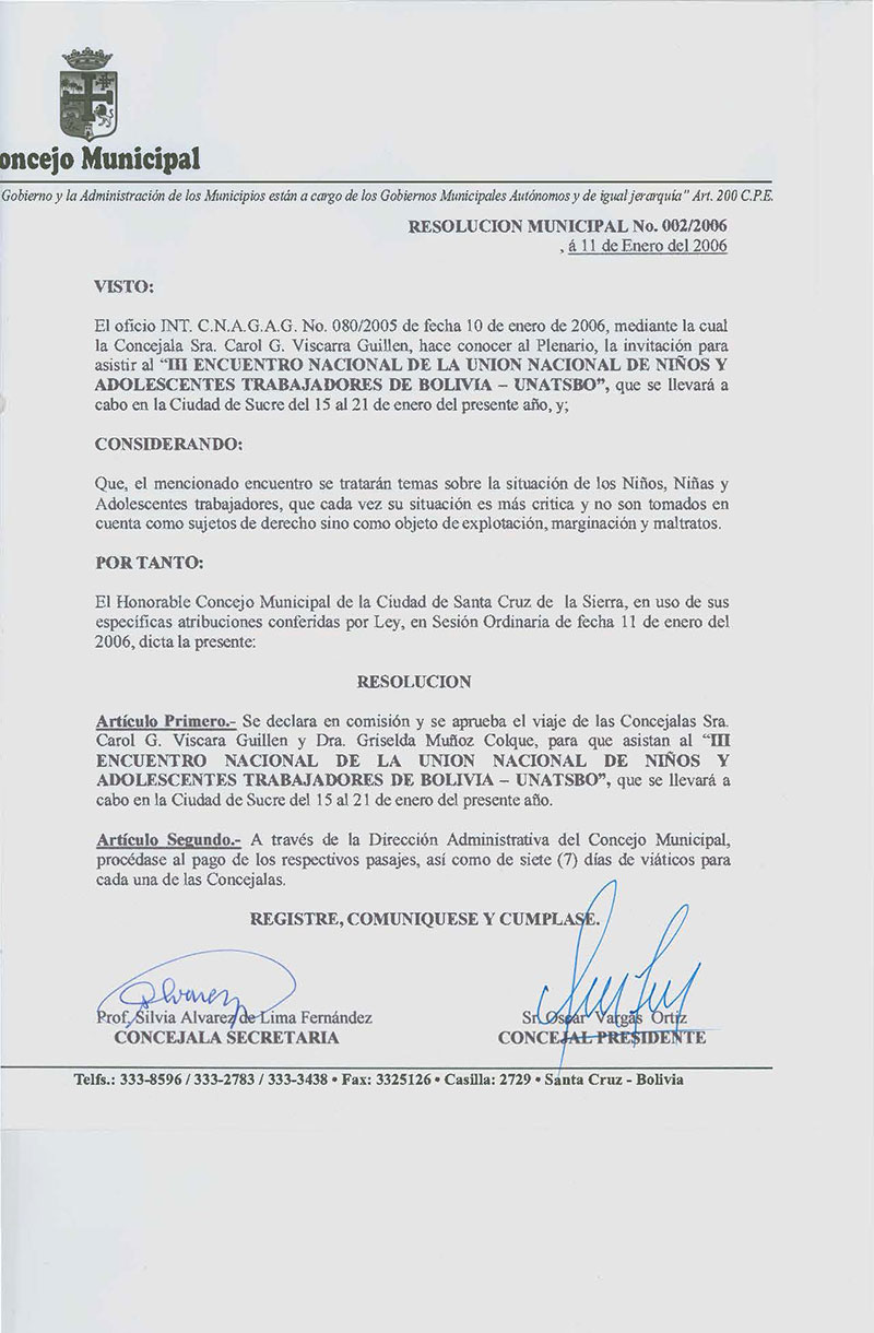 Aprueba el viaje de las Concejalas Carol Viscarra y Dra. Griselda Muñoz a la ciudad de Sucre.