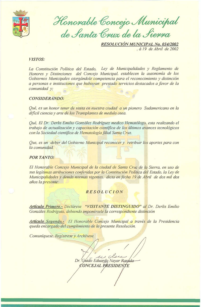 Se declara Huésped distinguido al Dr. Derlis Emilio Gonzáles Rodríguez.