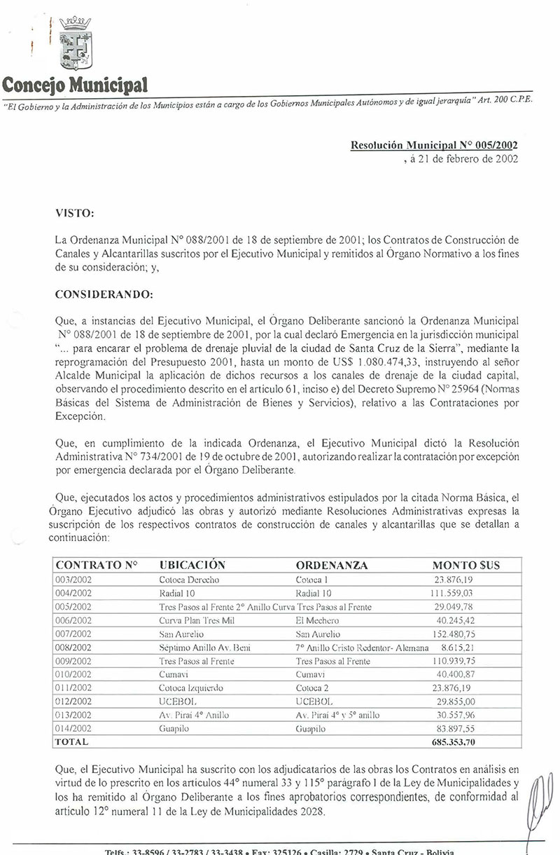 Resolución Municipal Nº 5-2002