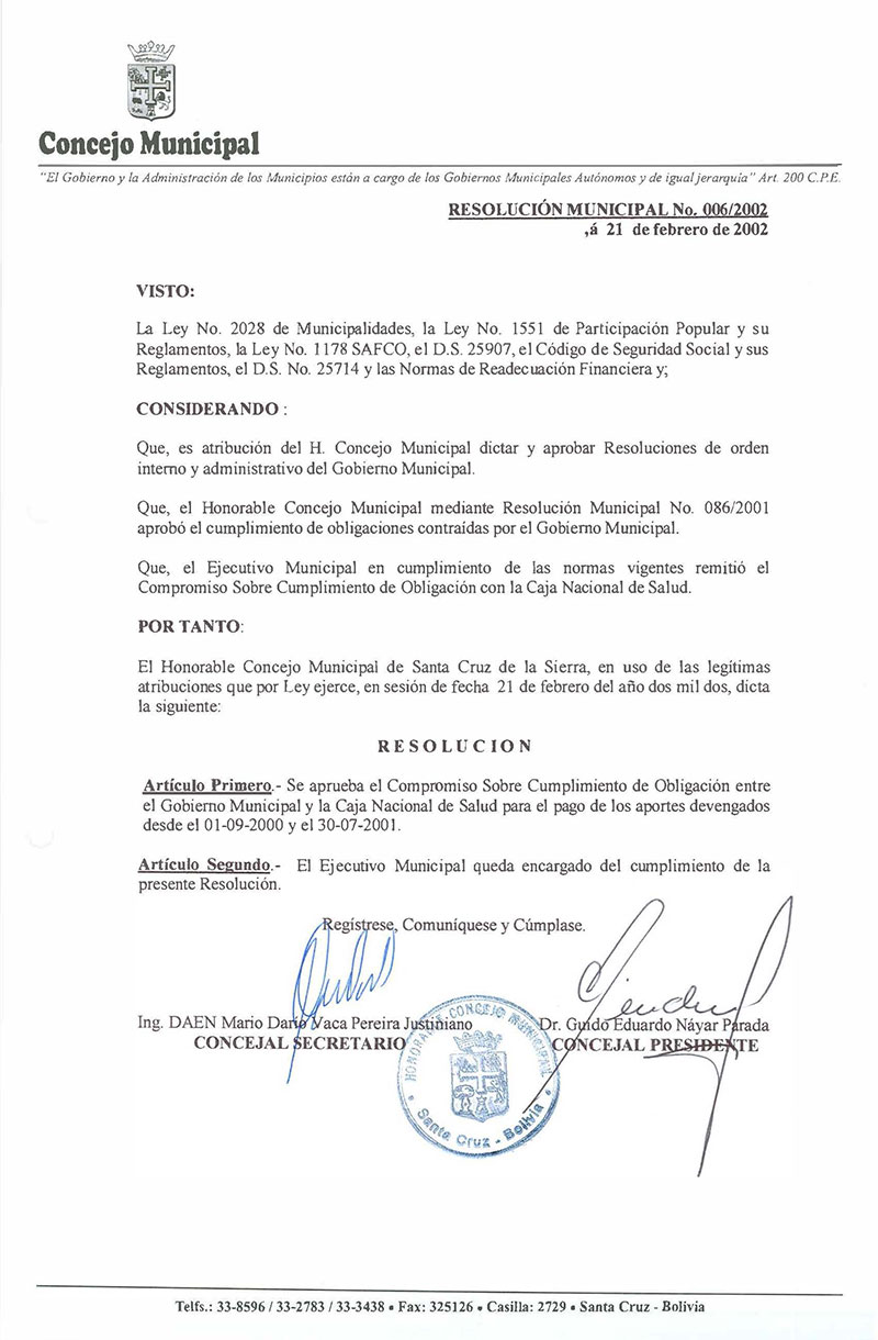 Resolución Municipal Nº 6-2002