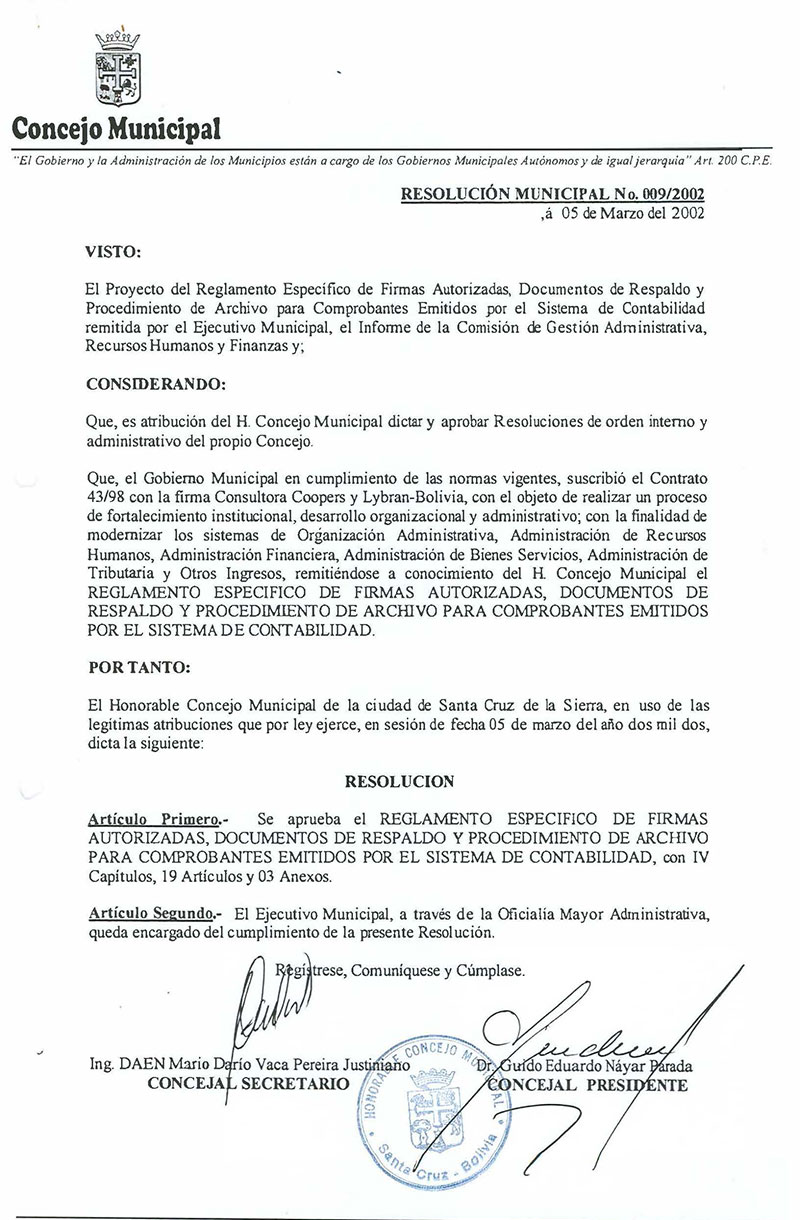 Resolución Municipal Nº 9-2002