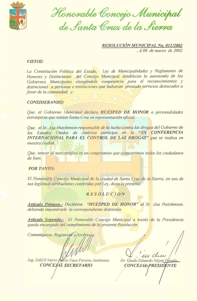 Declara “Huésped de Honor” al Sr. Asa Hutchinson,.