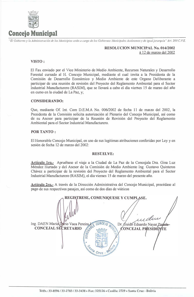 Resolución Municipal Nº 14-2002