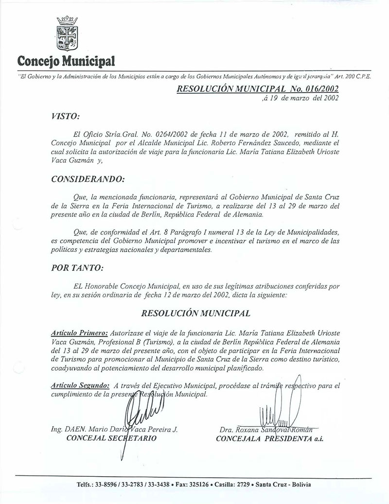 Resolución Municipal Nº 16-2002