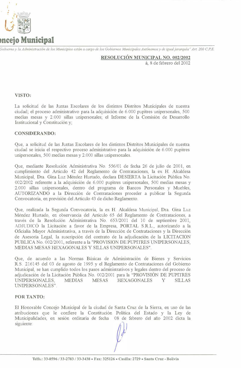 Resolución Municipal Nº 2-2002