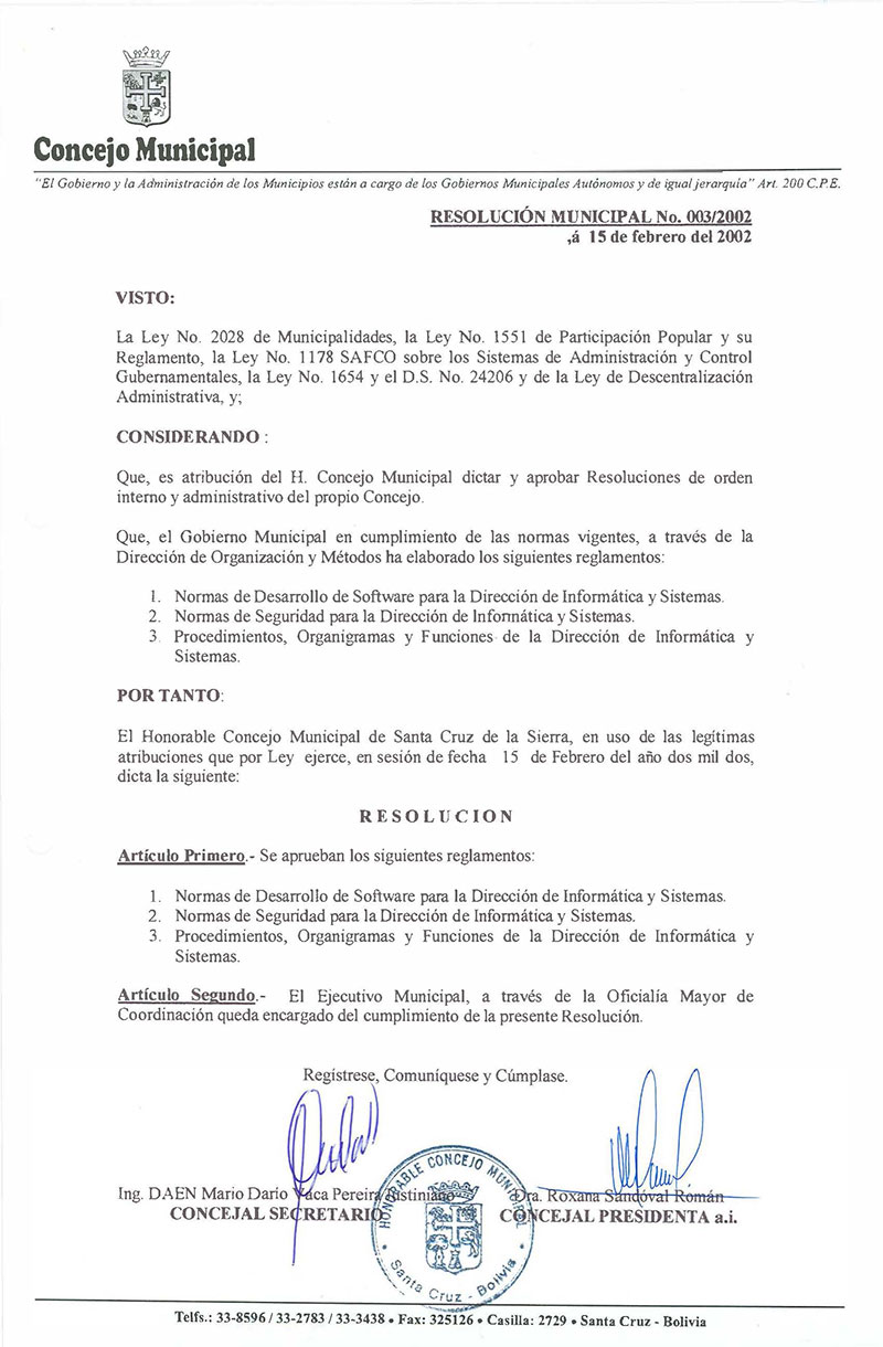 Resolución Municipal Nº 3-2002
