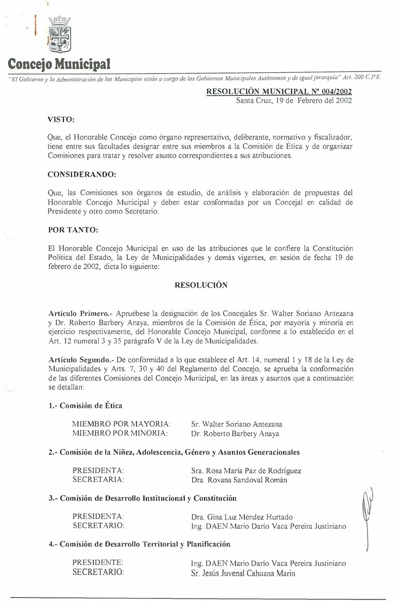 Resolución Municipal Nº 4-2002