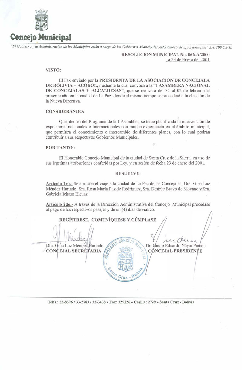Resolución Municipal Nº 2-2001