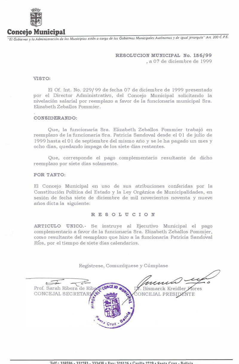 Resolución Municipal Nº 156-1999