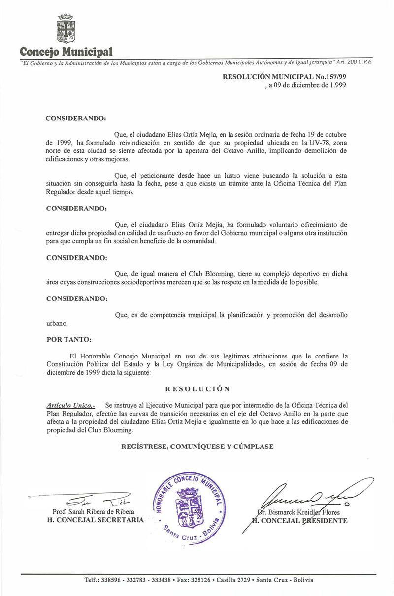 Resolución Municipal Nº 157-1999