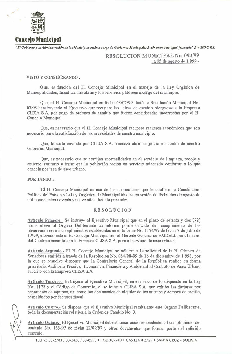 Resolución Municipal Nº 93-1999