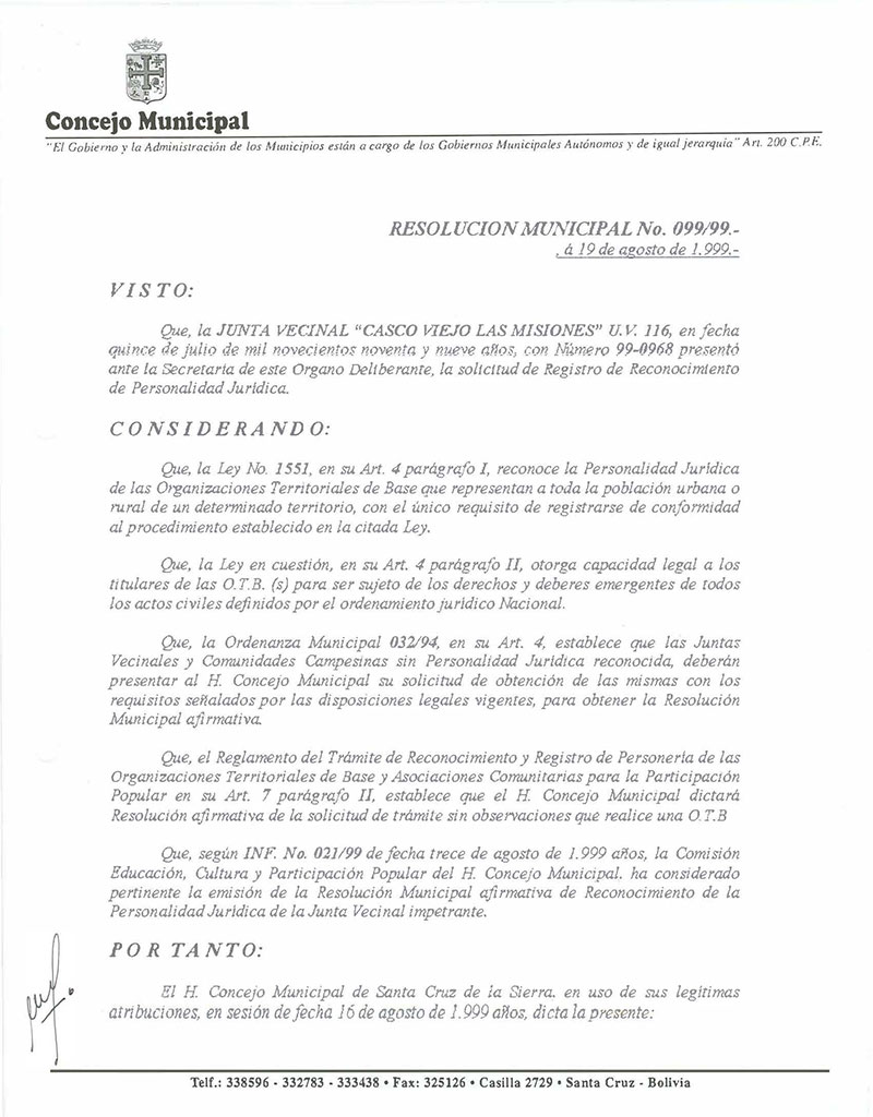 Resolución Municipal Nº 99-1999