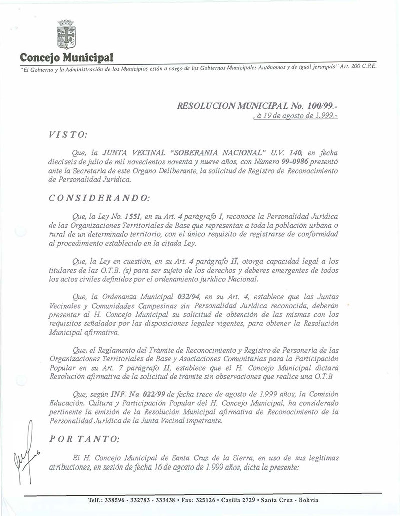 Resolución Municipal Nº 100-1999