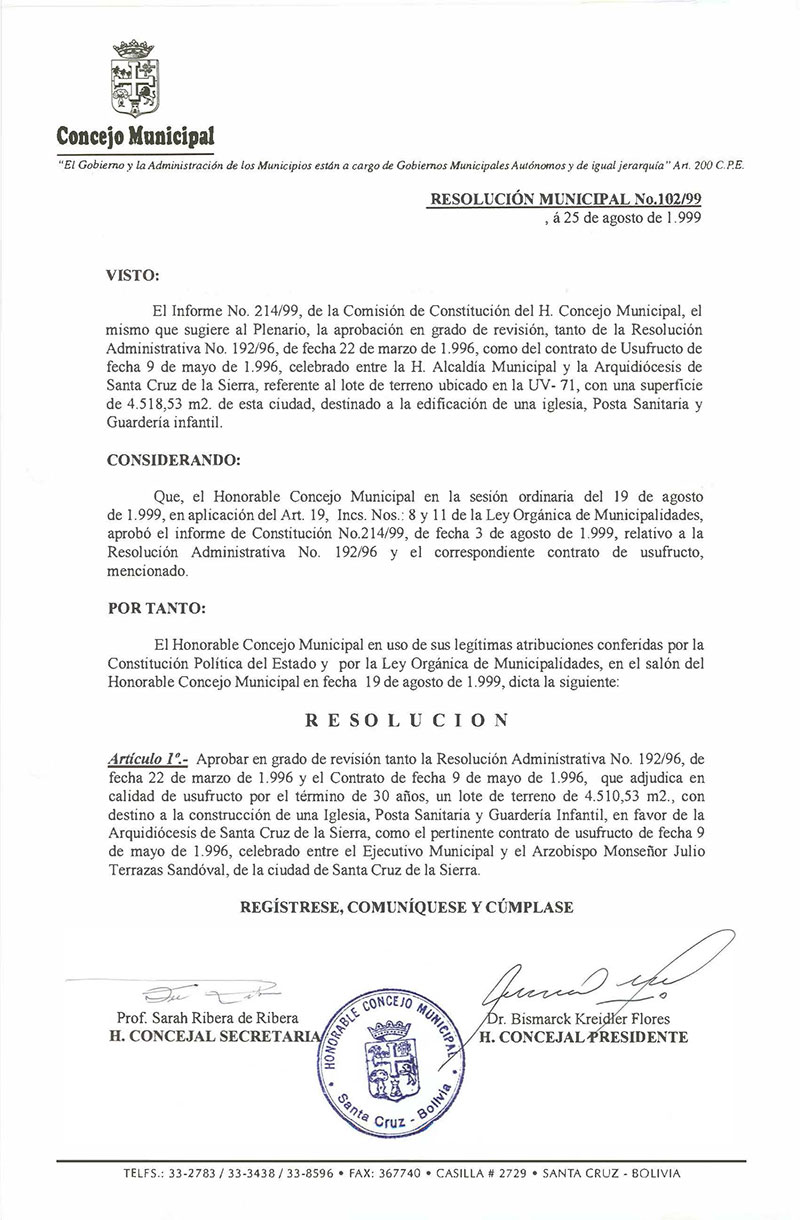 Resolución Municipal Nº 102-1999