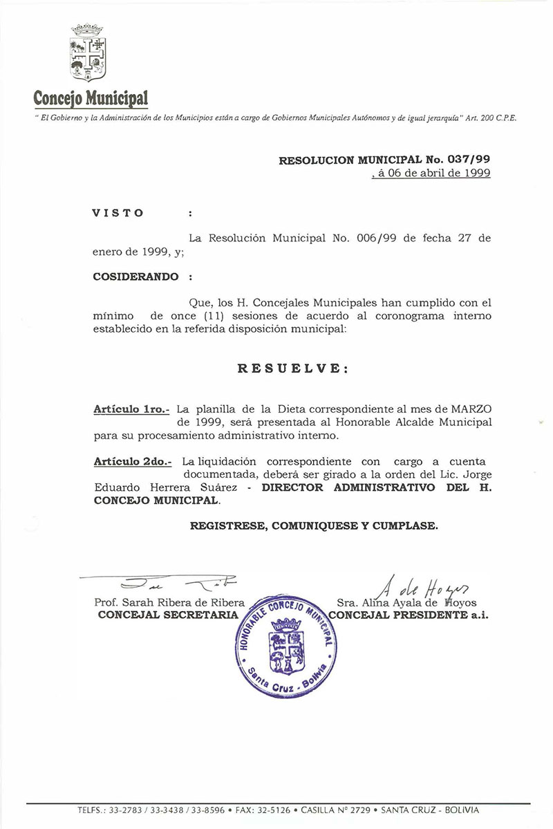 Pago de Dieta a los Honorables Concejales correspondiente al mes de marzo/99.