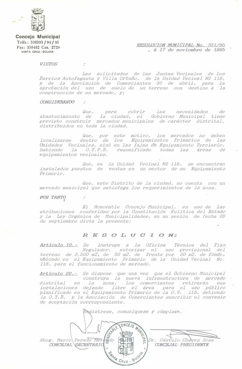 Instruye a la Oficina Técnica del Plan Regulador, autorizar el uso provisional del terreno ubicado en el Equipamiento Primario de la Unidad Vecinal No. 118, para el funcionamiento de Mercado.
